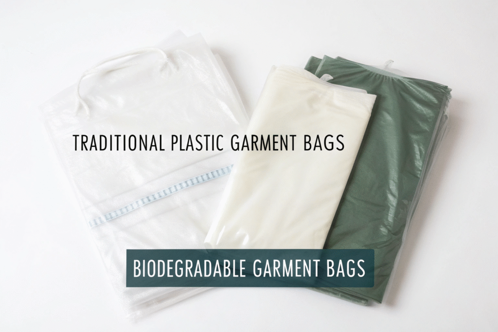 A typical polyethylene garment bag costs $0.02–0.04, while a biodegradable version ranges from $0.05–0.08. For a brand producing 1 million pieces annually, the cost difference may be $30,000–$60,000. According to McKinsey Sustainability, sustainable packaging investments often return through premium positioning and stronger shelf appeal.
