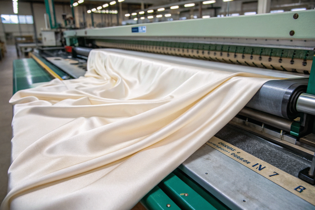Our satin production is done through a network of 4 local weaving and dyeing partners under our centralized QC management system. With our end-to-end tracking, you can trace every meter from yarn to finish.