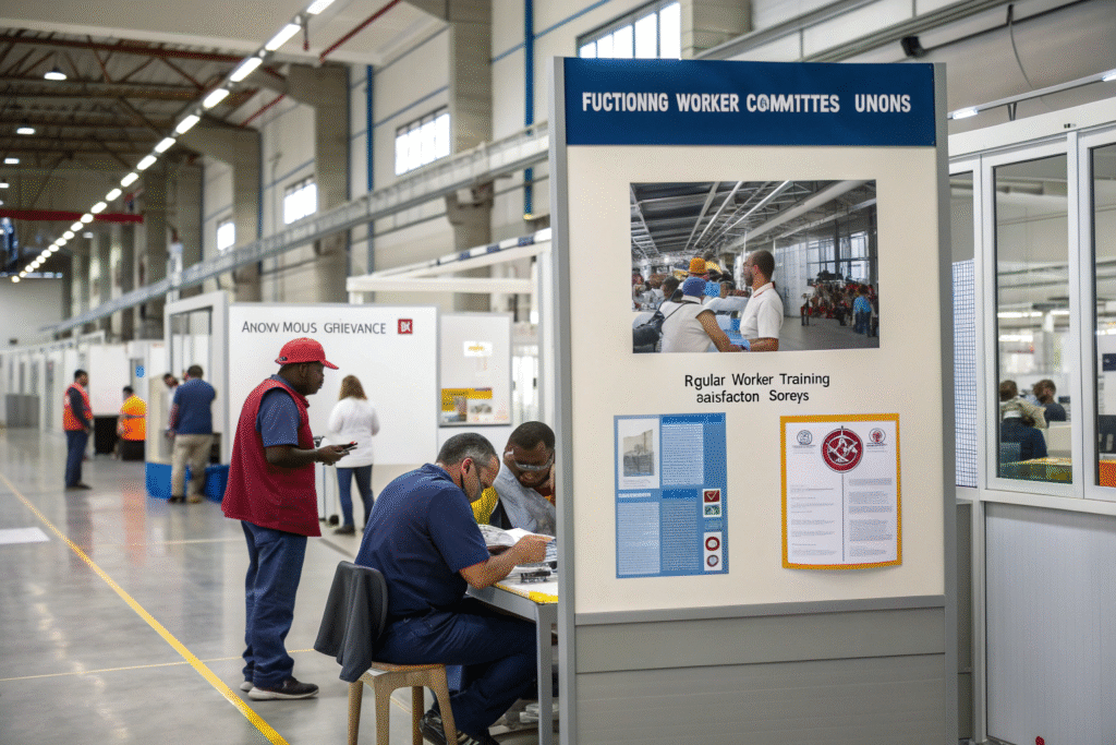 Look for evidence of functioning worker committees or unions, accessible and anonymous grievance mechanisms (like suggestion boxes or hotlines), regular worker training on their rights, and worker satisfaction surveys. Some of the most progressive brands facilitate direct, brand-worker dialogues (with interpreters) to hear concerns firsthand.