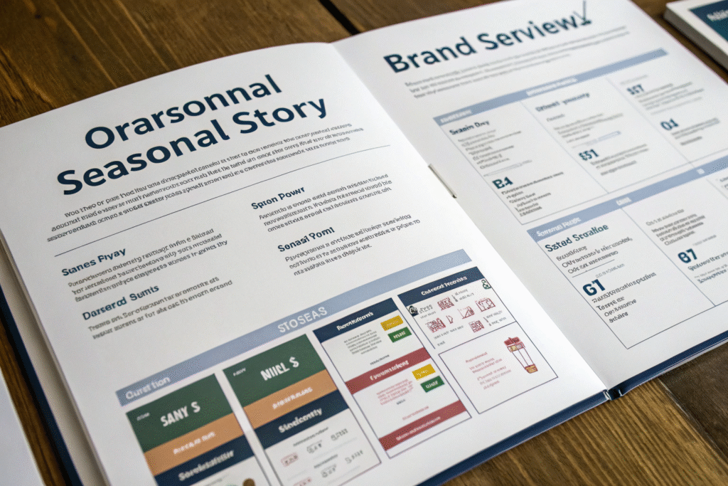 The most effective organizational structures begin with brand overview and seasonal story, then progress to collection overview, individual product pages, and finally ordering information. Each section should build upon the previous one, creating a compelling narrative that guides buyers toward placing orders. Clear section dividers, consistent layouts, and intuitive navigation are essential for maintaining engagement throughout the document.