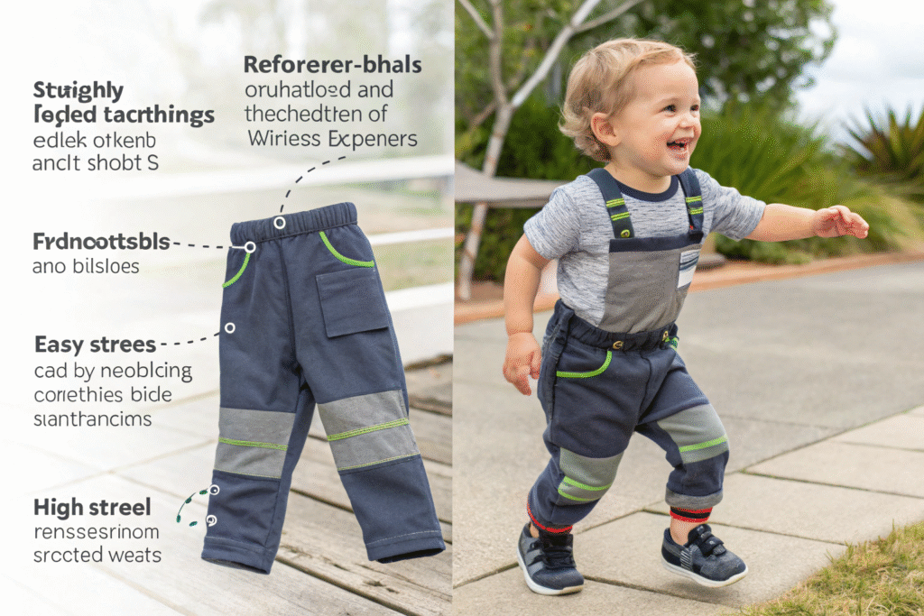 Toddler clothing must withstand rigorous activity while remaining easy to wear, requiring thoughtful construction that doesn't sacrifice functionality for durability.