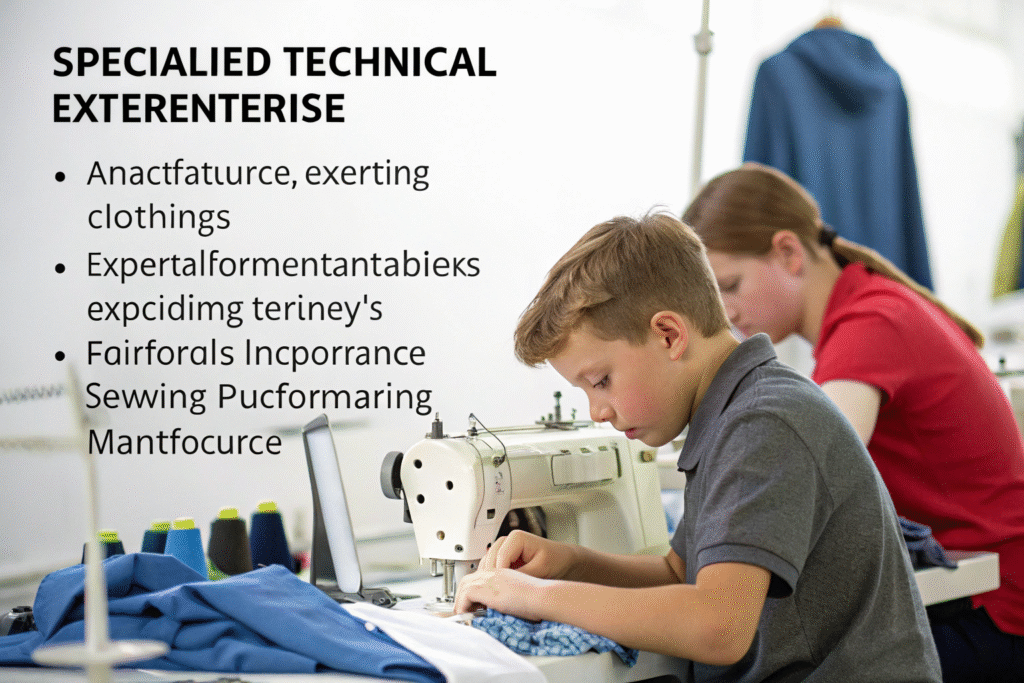 Performance clothing manufacturing requires specific technical knowledge about active constructions, functional features, and durability enhancements that standard children's wear producers may lack.