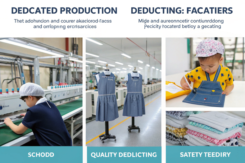 School uniform production prioritizes consistency, durability, and efficient high-volume manufacturing rather than the fashion-forward details of other lines. Dedicating specific production time to uniforms allows for optimized processes for repetitive styles, bulk fabric cutting, and standardized quality checks that would interrupt the flow of more varied fashion collections. This specialization significantly improves efficiency for both uniform and fashion production.