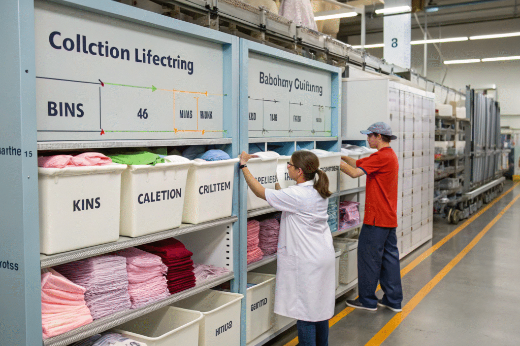 Material management must accommodate vastly different fabric requirements—from delicate babywear knits to durable uniform twills—while maintaining organization and accessibility.