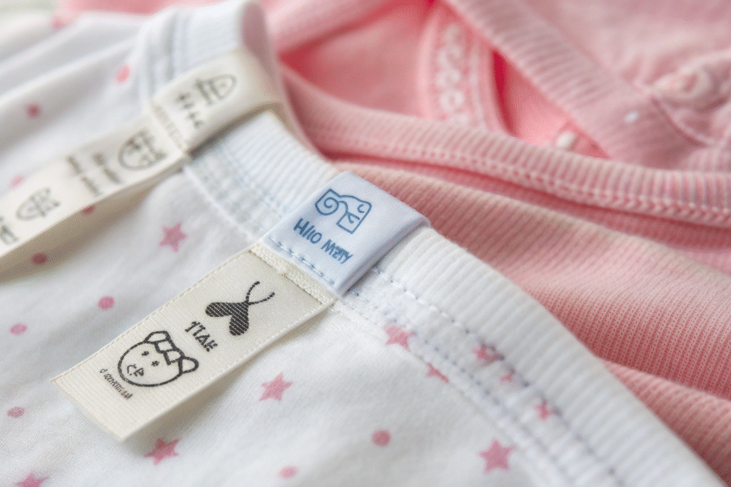 Care labels made from cotton or satin reduce discomfort and give parents easy-to-read instructions.