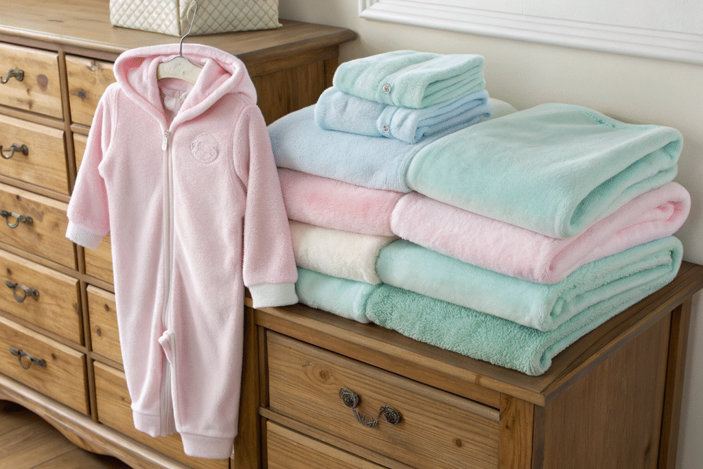 Fleece, generally polyester-based, is widely adopted for winter toddler sleepwear. It is valued for thermal insulation, lightweight structure, and fast-drying capacity.