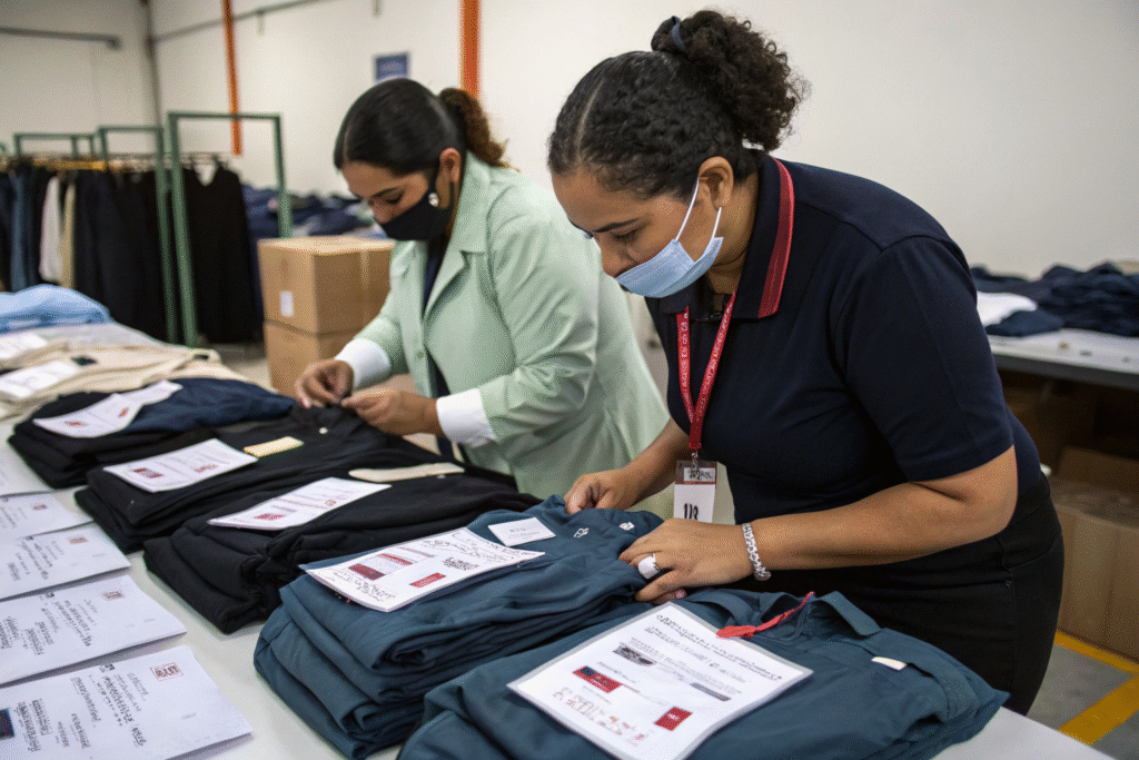 During assembly, in-line quality control (QC) tracks seam integrity, stitch density, and compliance with tech pack specifications. Sampling protocols, often AQL-based (Acceptable Quality Limit), are applied across multiple workstations.