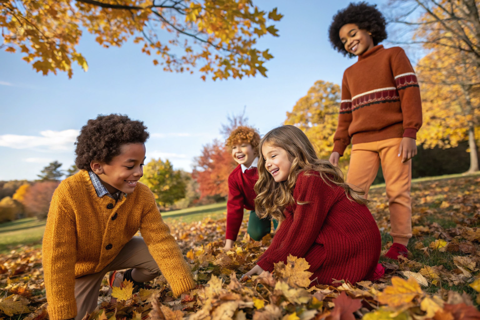 Jewel-toned brights like ruby red, sapphire blue, and amethyst purple harmonize with earth tones while providing vibrant contrast. These saturated colors have enough depth to feel seasonally appropriate while delivering the visual energy children love. According to the Child Development Institute's color research, children are naturally drawn to bright, saturated colors that stimulate their developing visual systems. For fall collections, using these brights as accents against neutral or earth-tone backgrounds creates balance—satisfying children's color preferences while maintaining the sophisticated seasonal aesthetic parents appreciate.