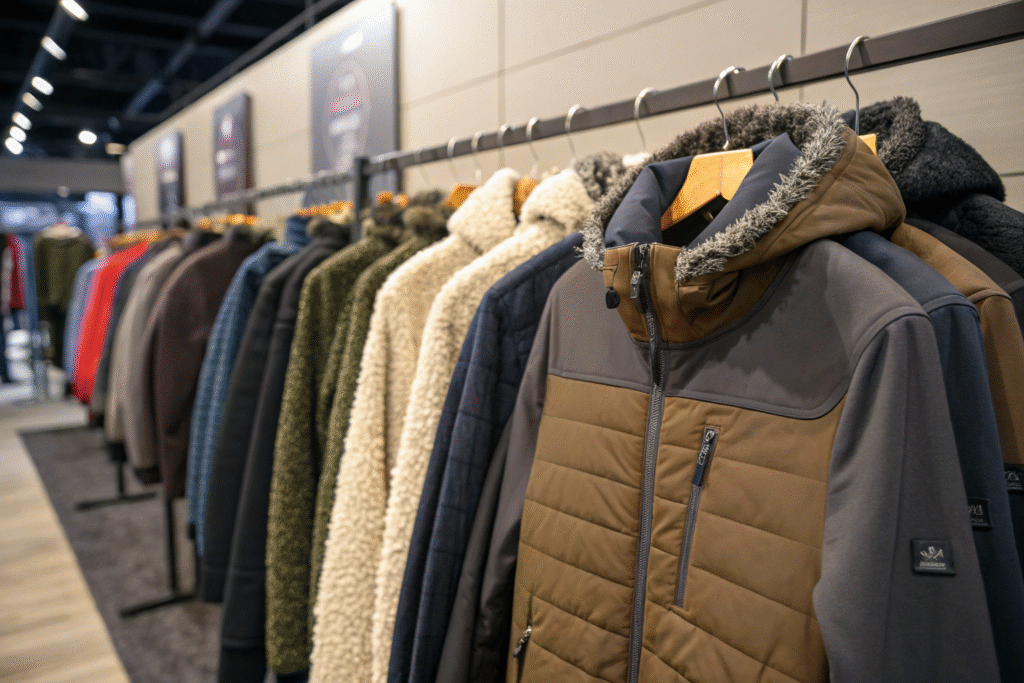 Wool (especially merino) and wool-blend knits provide natural, breathable warmth and odor resistance. For outer layers, soft shell and sherpa-lined fabrics offer wind resistance, water repellency, and cozy insulation for jackets, vests, and snow pants.