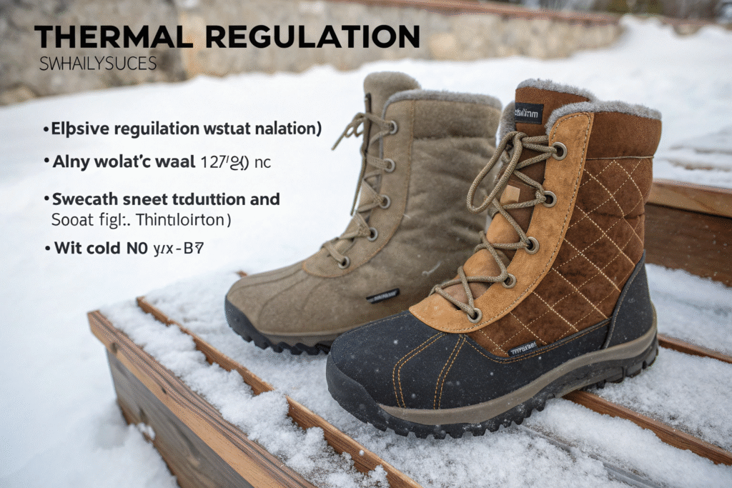 - Very Cold & Dry (Below 10°F / -12°C): Heavy insulation (400g+) is necessary. Boots may also have additional reflective thermal layers and be designed to accommodate thick thermal socks.