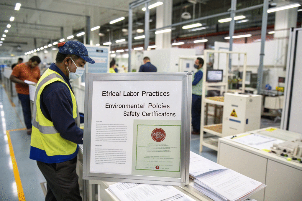 Questions about ethics and compliance should cover their labor practices, environmental policies, safety certifications, documentation capabilities, and audit willingness. Responsible manufacturing practices protect your brand from reputation damage and supply chain disruptions.
