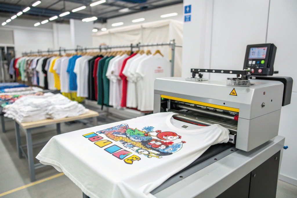 Key advances include direct-to-garment (DTG) and sublimation digital printing that allow for complex, full-color designs with no setup cost per design, computer-controlled embroidery machines for precise logo work, and flexible cut-and-sew production lines that can handle frequent style changes with minimal downtime. Software integration from design to cutting is crucial.