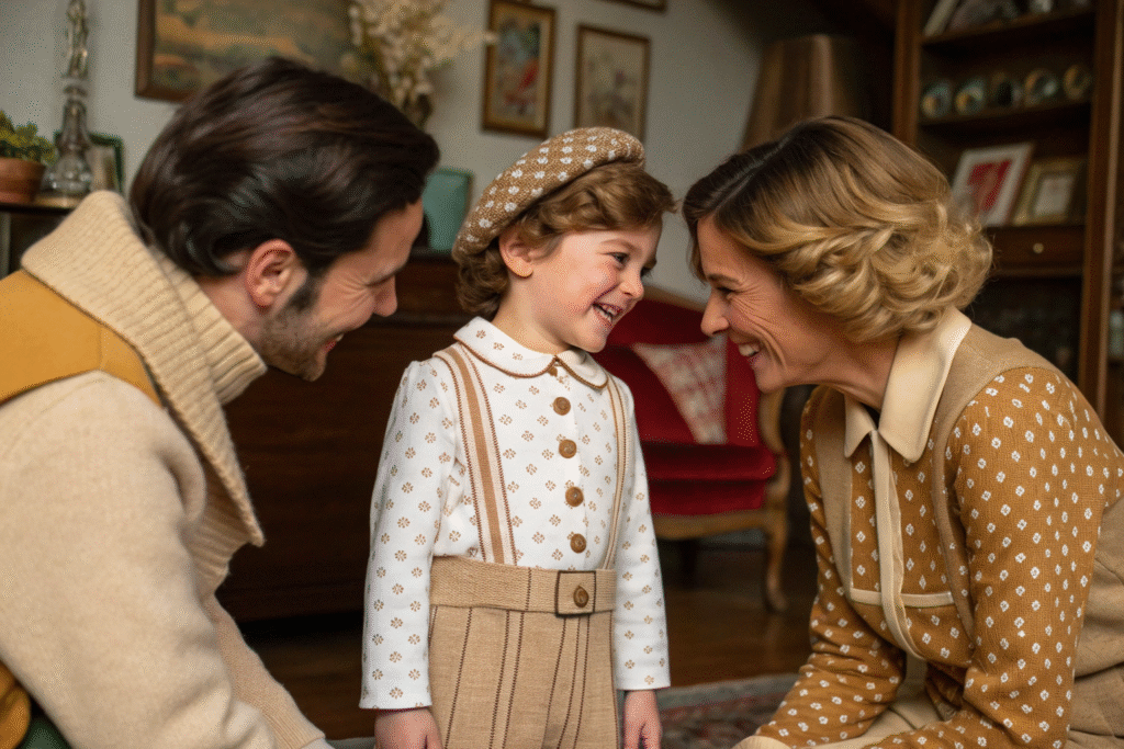 The choice to dress children in vintage clothing often reflects parents' desire to express specific values, create meaningful connections to the past, and cultivate distinctive family identity through clothing choices that stand apart from mass-produced contemporary options.