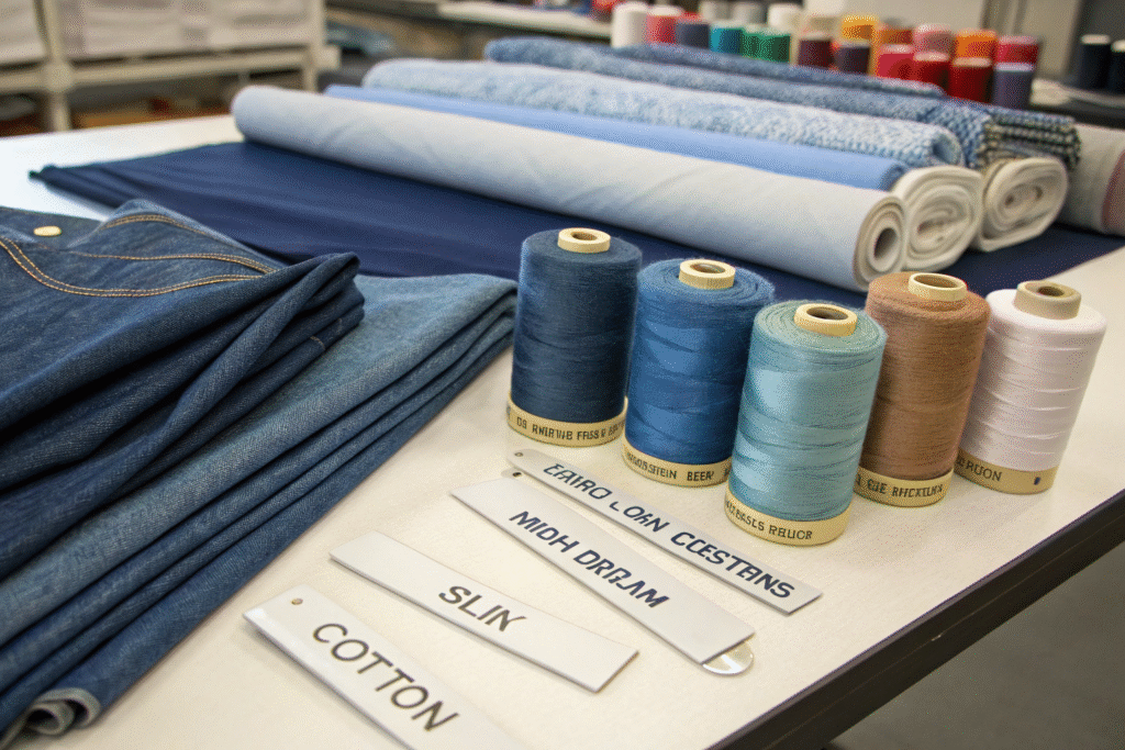 - Heavy fabrics such as denim require strong polyester or core-spun threads.